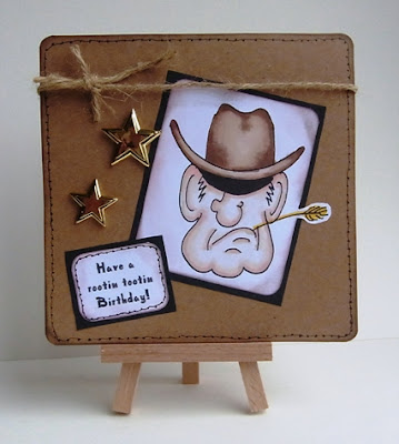 Rodeo Randy is the center piece of Tammy's card with fabulous papers, textures and funny sentiment.